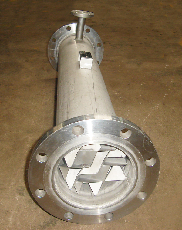 Chemsys Static Mixers are in-line units with no moving parts. The product consists of stationary mixing elements inserted in a length pipe. Each element is built up from corrugated plates forming open, intersecting channels. In these channels fluid flow is split into subflows, which are repeatedly changed in direction & reunited, thereby achieving intermixing in the radial direction. This results in homogeneity of concentration, temperature & velocity over whole flow cross section.